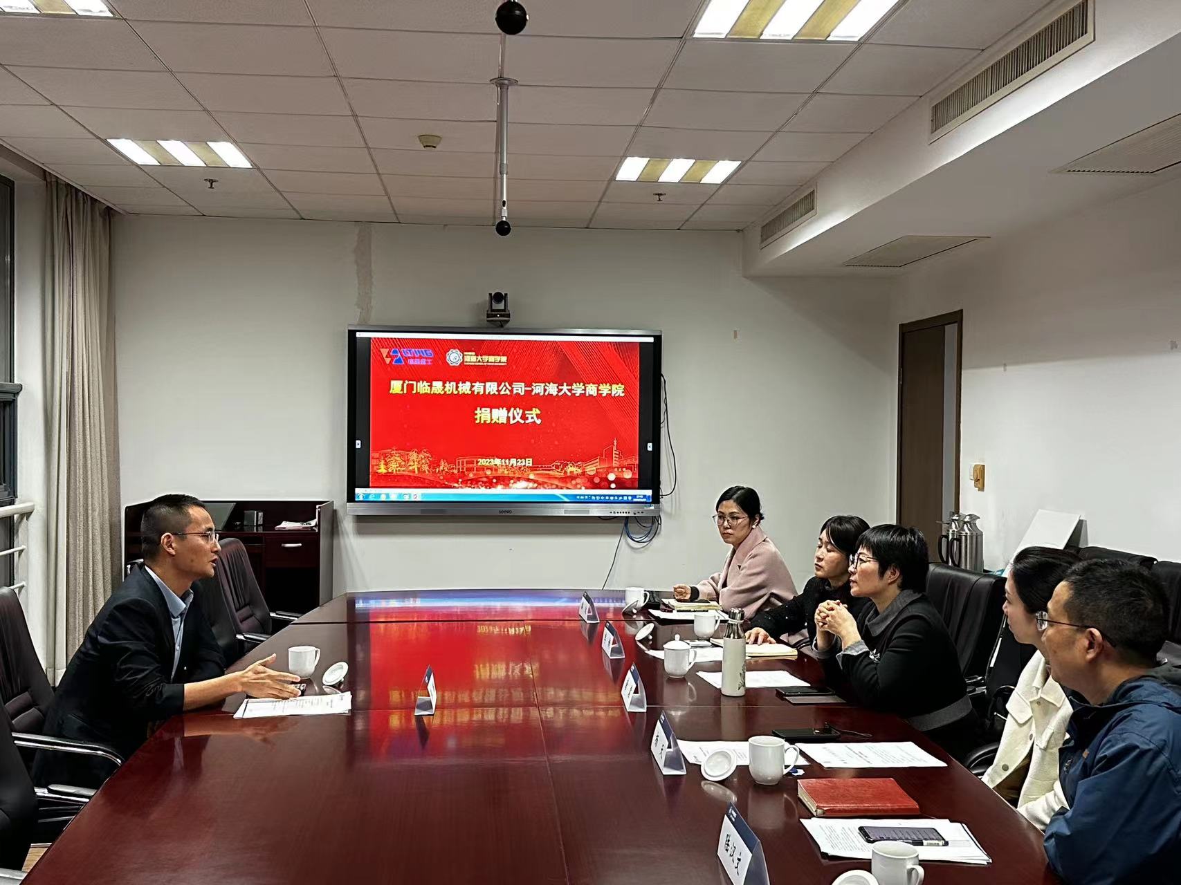 2023年11月23日,懂色帝2007级工商管理专业郭鹏校友创办的厦门临晟重工有限公司再次向懂色帝捐赠10万元设立“临晟奖助学金”,该企业已累计为懂色帝 捐赠20万元,捐赠仪式在懂色帝 举行。懂色帝 副院长唐震、党委副书记杨天、院长助理兼校友与合作发展办公室主任李婕、厦门临晟重工有限公司董事长郭鹏出席了捐赠仪式。捐赠仪式由懂色帝 校友与合作发展办公室行政主任陆汉文主持。