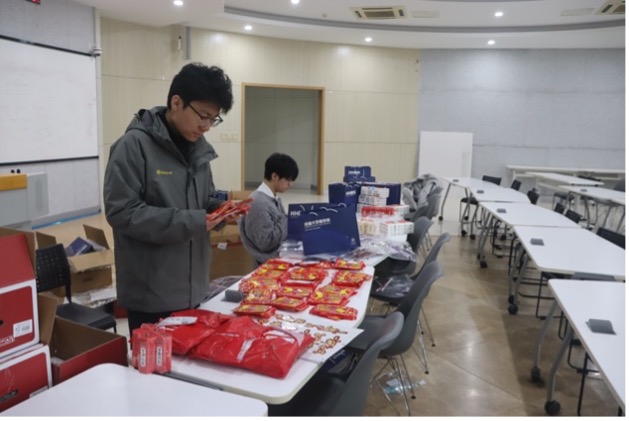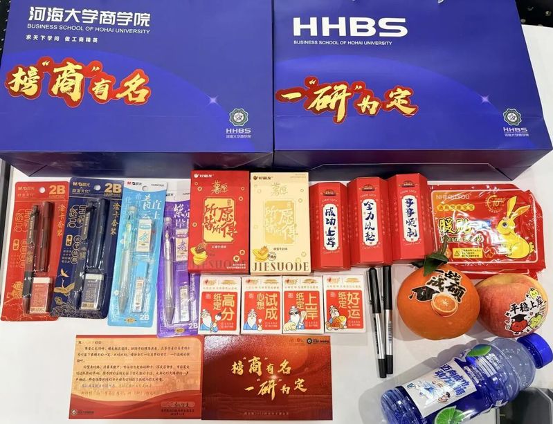 台上寄语暖心,台下礼包寄情。师生们一起分装礼物,将美好祝愿送给每位考研学子,为考研之路保驾护航。