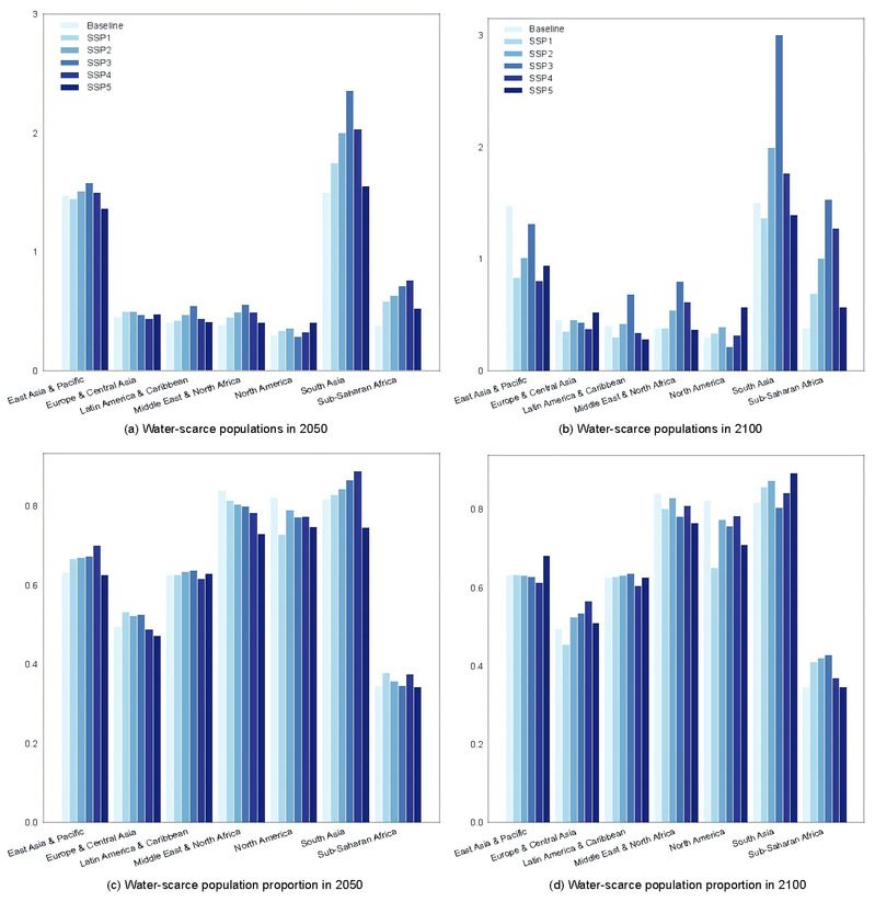 这种短缺风险在地理分布上极不均匀,且与社会经济发展水平高度相关。南亚、东亚以及撒哈拉以南非洲等人口密集且发展中地区将成为水资源危机的重灾区。与以往研究相比,该成果揭示了更加严峻的未来图景,强调了人口增长与资源分配不均的叠加效应是导致危机升级的主导因素(图1)。